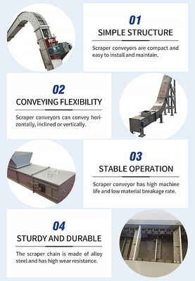 Scraper conveyoris a material conveyingequipment withscraper chain as the traction mechanism and chute as thebearing mechanism, which is driven by electric motor forcontinuous work.