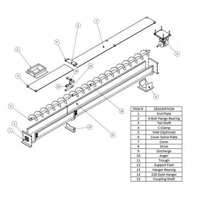 U 모양의 트로프 디자인:전통적인 실린더 나사 컨베이어보다 더 큰 용량을 제공하며 밀폐 된 튜브 컨베이어에 비해 검사 및 청소에 더 쉽게 액세스 할 수 있습니다.