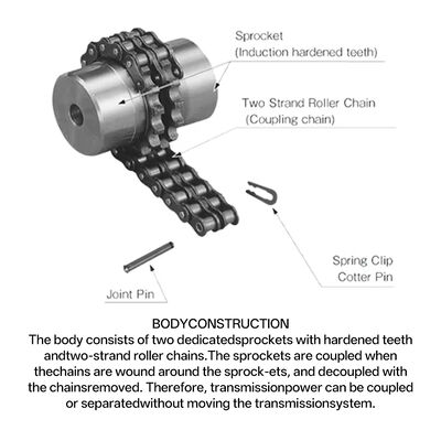 핵심은 두 개의 스프로킷 형태의 반쪽 커플링과 롤러 체인으로 구성되며, 종종 보호 커버가 장착됩니다. 본체는 일반적으로 45# 강철로 단조되며, 체인과 치면은 담금질 처리를 거쳐 내마모성과 내구성을 향상시킵니다.
