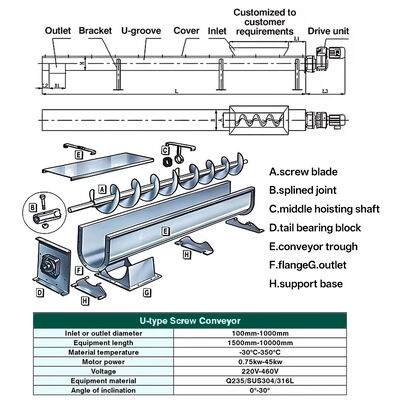 산업용 맞춤형 스테인레스 스틸 열 저항 스크루 오거 컨베이어